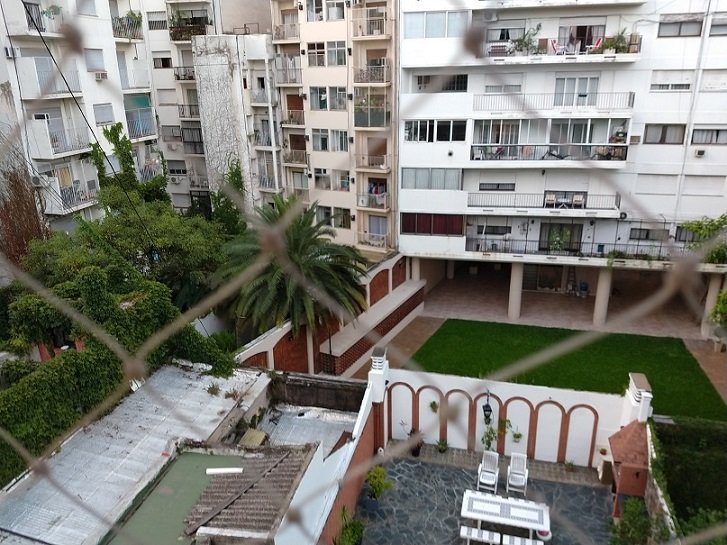 El edificio tiene una antigüedad aproximada de 50 años, consta de 8 pisos de altura y tres departamentos por piso, dos ascensores y portero permanente.