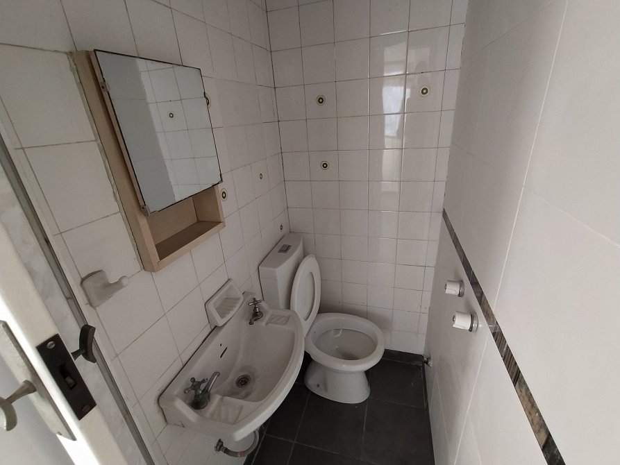baño de servicio de 1,30 x 0,85 mts. (piso de mosaico granítico y paredes revestidas en azulejos de color liso)