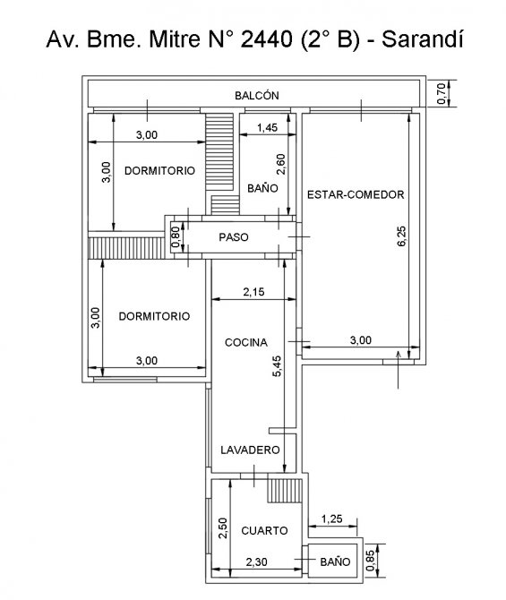 hall distribuidor de 0,80 x 3,30 mts (piso de mosaico granítico)