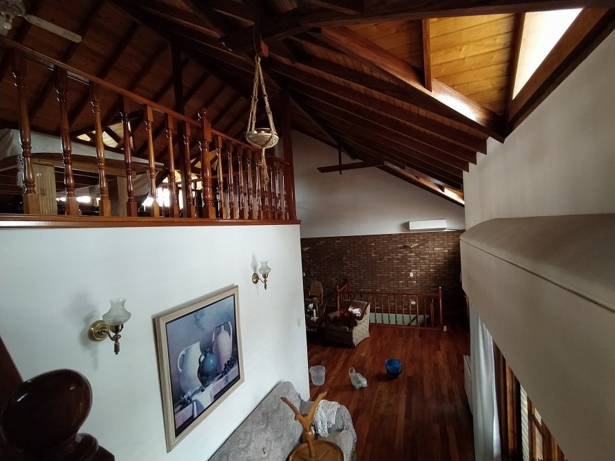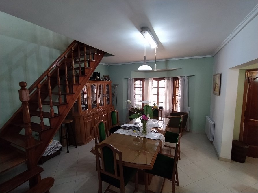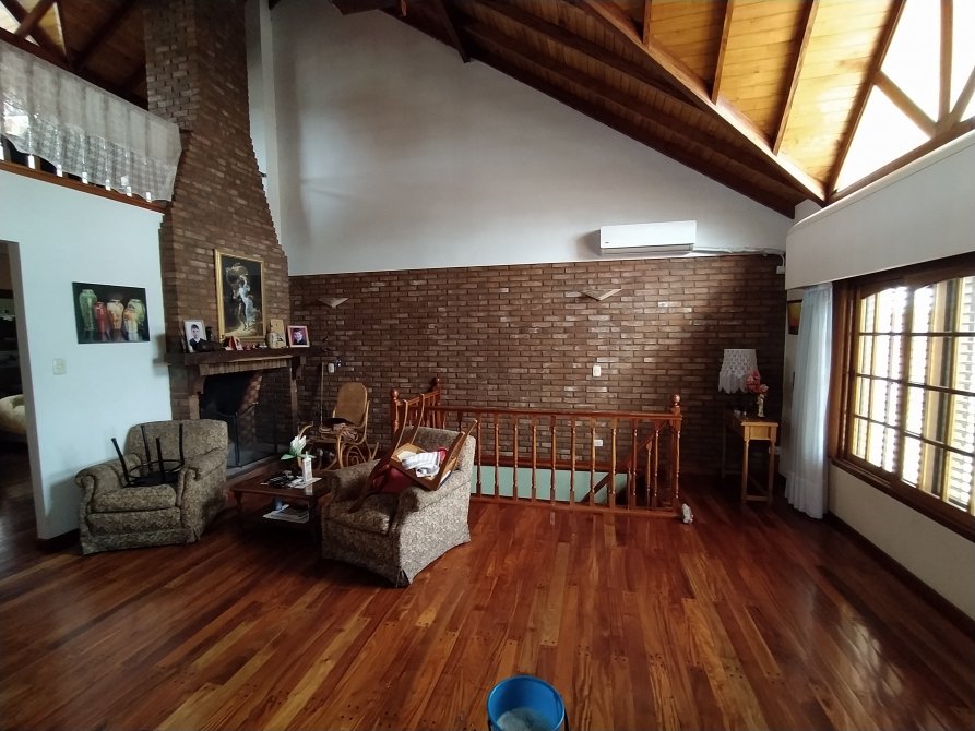 El estado de la construcción es excelente, con una antigüedad de 23 años aprox. Pisos de porcelanato, mosaico, alfombra, y madera. Paredes revestidas en yeso pintadas, a excepción del baño y cocina con revestimiento cerámico. Techos de losa de Hº Aº con cielorrasos revestidos en yeso pintado en P.B. y de teja con cielorraso de machimbre barnizado en P.A.