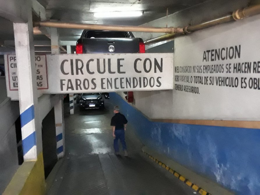 Edificio de cocheras con portón de entrada controlado por encargado permanente las 24 horas, acceso peatonal con ascensor y escaleras.