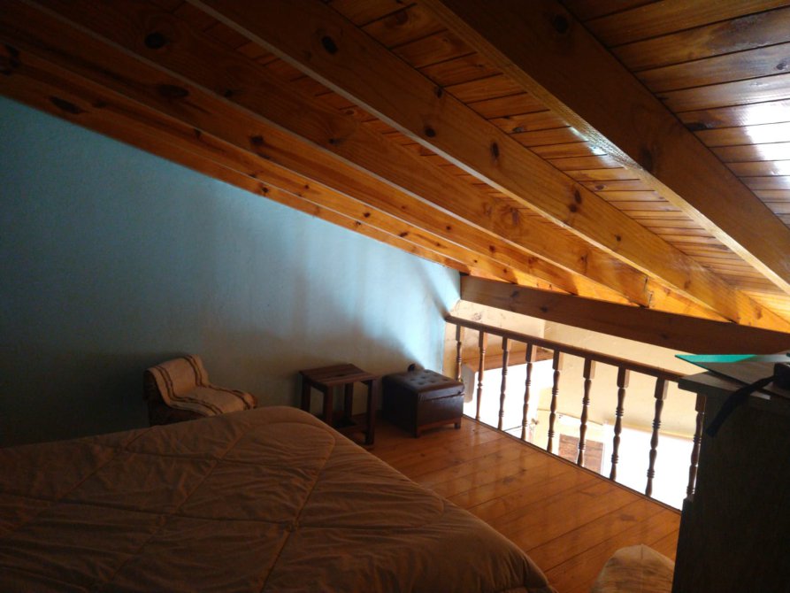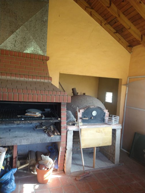 - Quincho de 3,80 mts x 5,30 mts. con parrilla incorporada, horno de barro y mesada granítica con pileta. Panta alta (entrepiso) con acceso a través de escalera de madera: