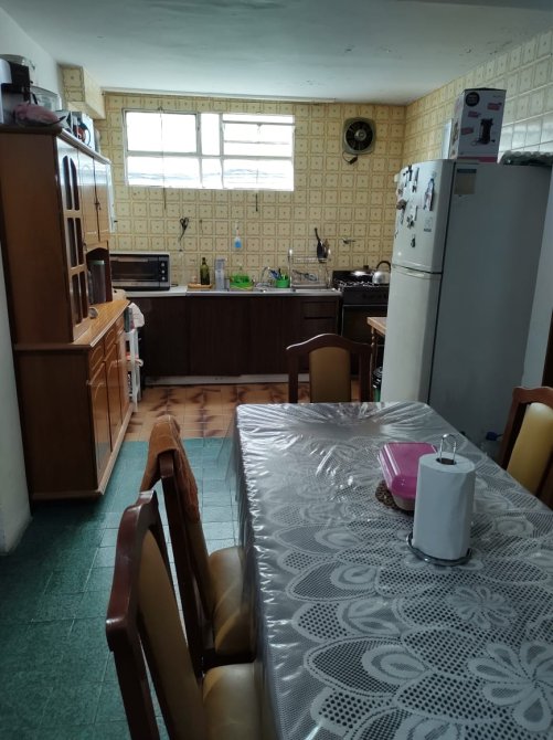 Estar-cocina-comedor: 3,90 m x 5,80 m más un espacio adicional de 3,00 m x 2,80 m, con piso cerámico.