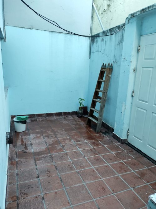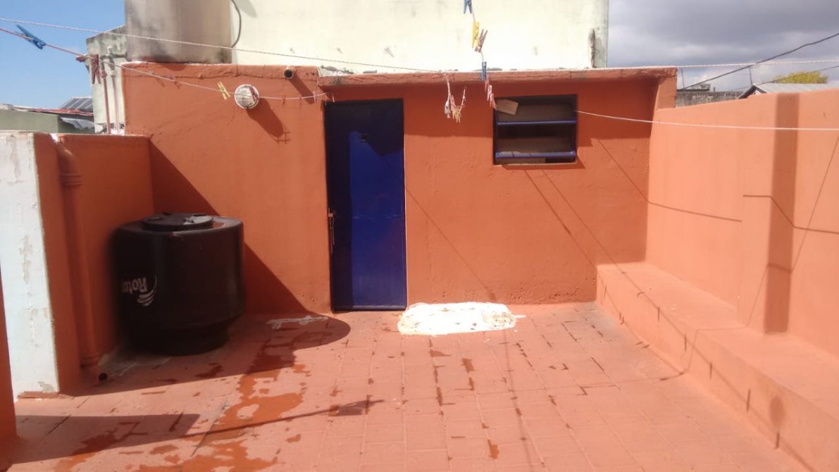 Patio descubierto: 2,70 m x 2,20 m con piso de mosaico, acceso secundario por pasillo común.