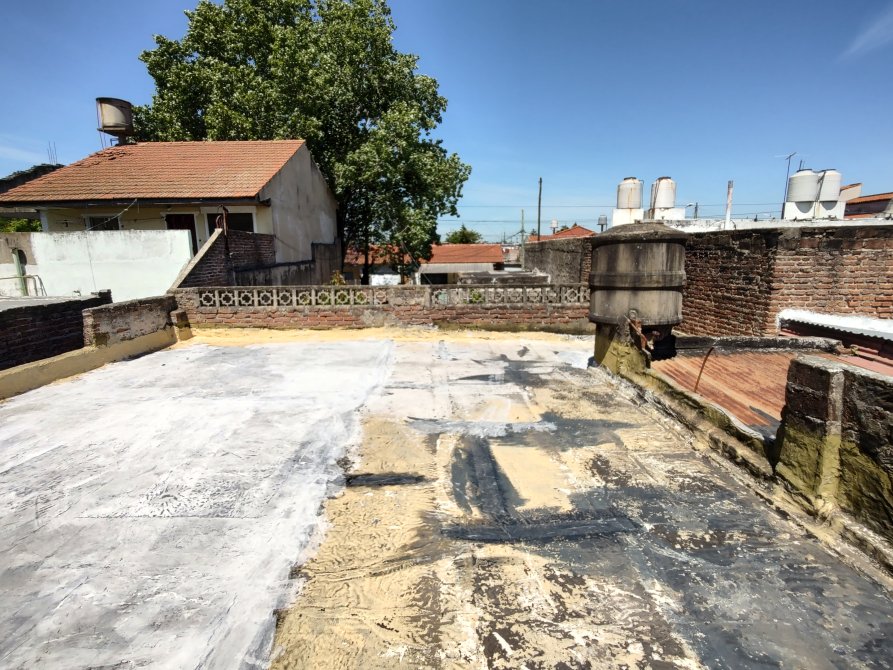 Techos de losa en la mayoría de los ambientes, excepto en la galería (techo de chapa).