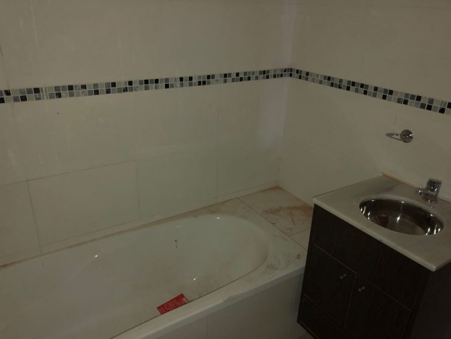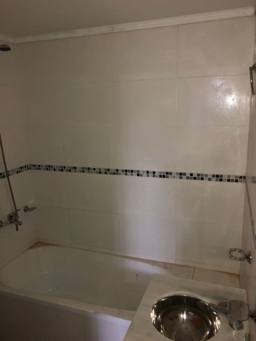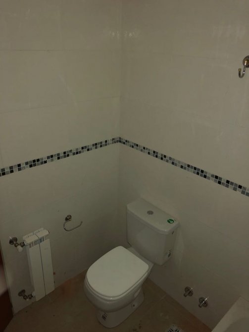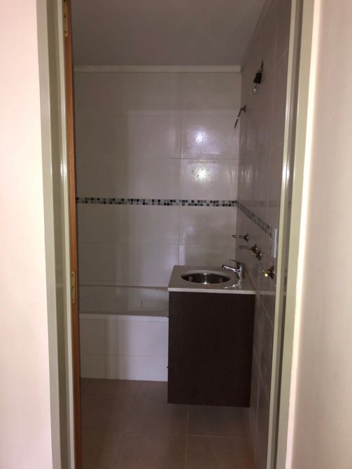 El baño de 1.87 x 1.78 está completo. Cuenta con bañera, cuadro de ducha, bidet, inodoro, vanitory de madera con mesada en mármol y bacha, percheros. Sus pisos son cerámicos al igual que las paredes, que cuentan con guarda perimetral en sus cuatro laterales.