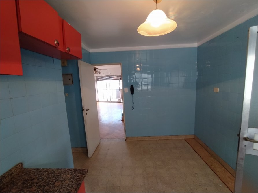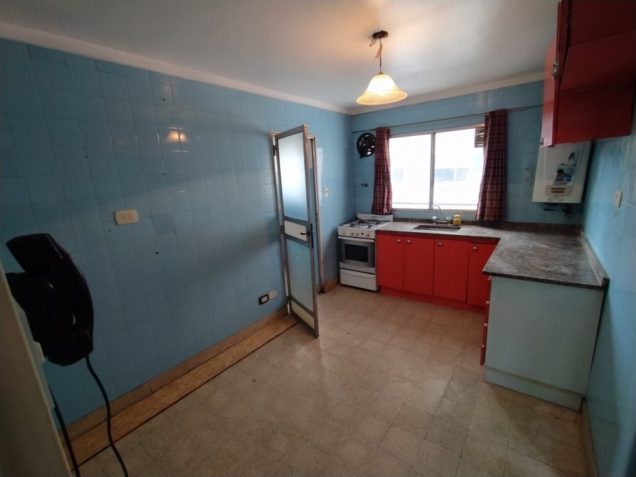 * Cocina de 3.80 x 2.55 mts, con pisos de mosaico, equipada con cocina, mesada, bacha, mueble bajo mesada y alacena.