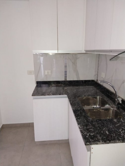 Estar-comedor de 3.35 x 8.30 con pisos de porcelanato y con cocina integrada; toilette de 1.30 x 1.55; lavadero de 1.80 x 1.00, dosdormitorios de 3.00 x 3.00 más placard con piso de parquet; baño principal de 1.65 x 3.05; y balcón corrido.