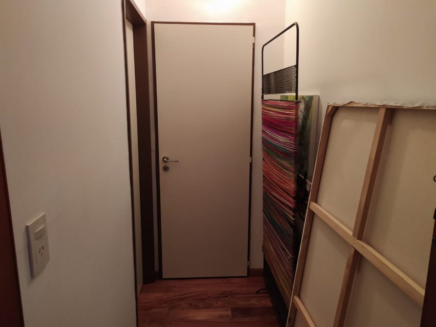 pasillo distribuidor de 1,00 mts x 2,00 mts con piso de madera tipo entarugado