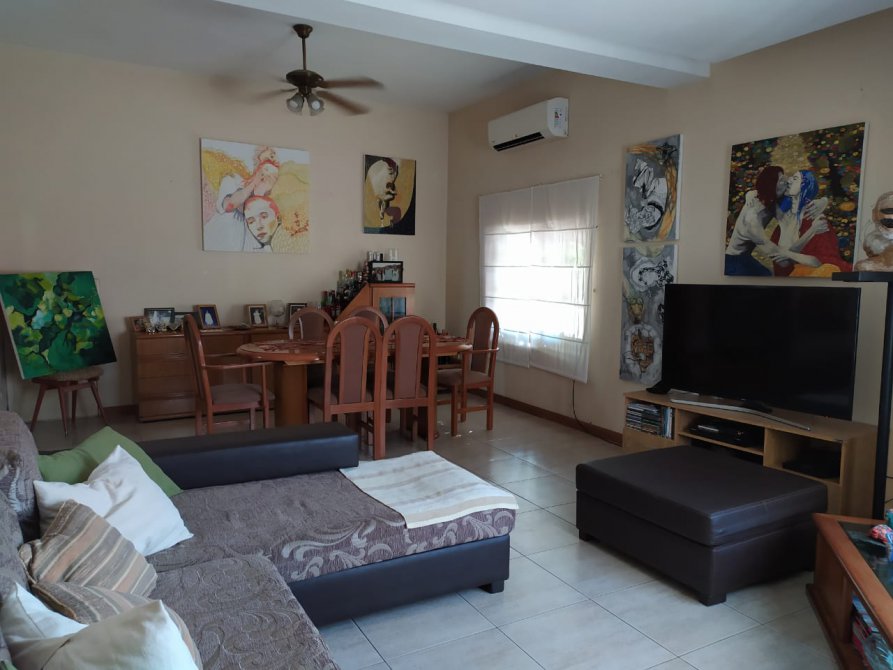 Paredes revestidas en yeso pintado y azulejos en baño y cocina, techos de losa de H° A° con cielorraso de yeso pintado. Sup. Total: 188,60 m2. Sup. Cubierta P.B: 172,60 m2. Sup. descubierta: 16,00 m2.