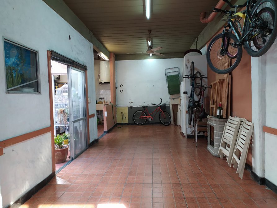 cochera cubierta para dos autos con parrilla de 3,20 mts x 9,60 mts, piso de cerámica