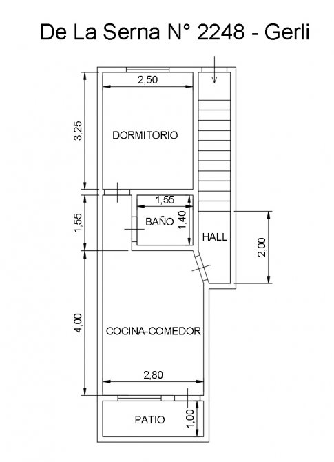 * patio S/cubierto de 1,00 mts x 2,80 mts.