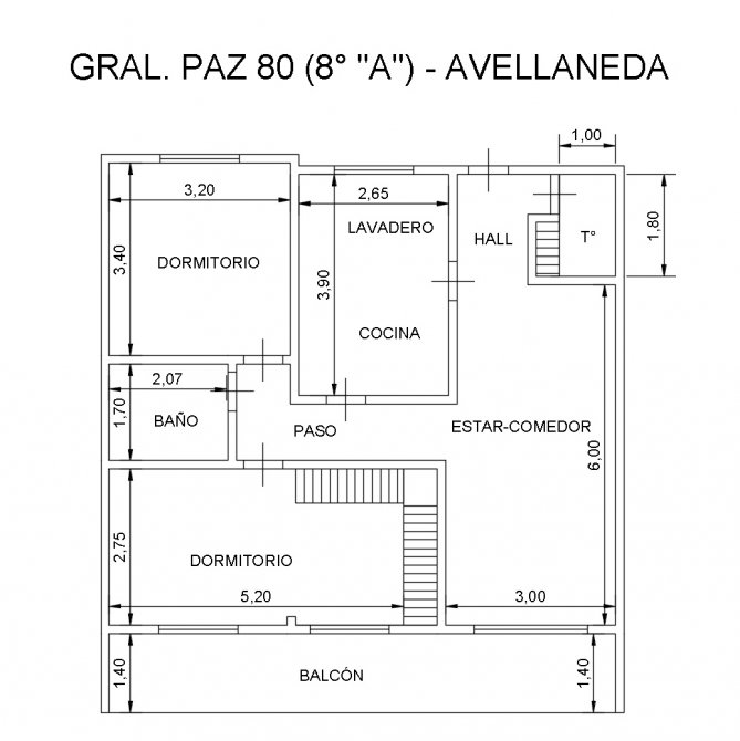 Se trata de un departamento del tipo semipiso, implantado en el piso 8° departamento “A”. Con frente a la calle Gral Paz N° 80 entre las de San Martin y Av. Bme Mitre, de la localidad de Avellaneda, Provincia de Buenos Aires.