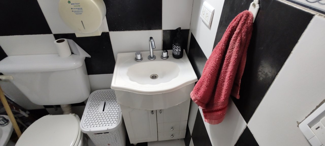 Baño completo de 1,85 m x 1,20 m, con todos los artefactos necesarios.