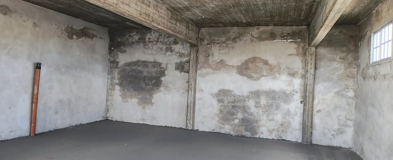 · Pisos combinados de mosaico granítico y cemento alisado, paredes revocadas y pintadas, techo de losa.